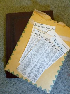 Throughlines. I suspect we all have one, whether we know it or not. For so many years I believed that nursing was the single thread that connected all of my actions, but perhaps, unlike novels and plays, we can have more than one. Although I’ve identified myself as a writer for only the past fifteen years, these musty newspaper clippings, the yellowing yearbook pages, and high school chums remind me that the writing throughline reaches back to a much earlier time in my life.