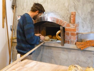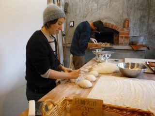Condensation forms on the bakery windows as we linger, adding to the lore that’s already developing around this hand-crafted business. Like the bicyclists who didn’t even make it to the end of the driveway before they turned back to get more scones. Or the locals who stop in early to get scones fresh out of the oven, then return at noon for pizza. And the unanimous opinion that sharing Saturday bread with neighbors is a ritual worth repeating.