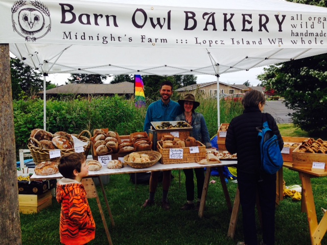 I first tasted Barn Owl’s delicious artisan loaves in 2011 when Sage and Nathan, the bakery’s owners, moved to Lopez Island from Berkeley, CA. I wrote about how their immediate success at the weekly Farmers’ Market led to a Kickstarter campaign and the building of a certified, wood fired oven and bakery. Earlier this year, Barn Owl Bakery bumped up production to sell bread at Blossom Grocery on Lopez and the Food Co-Op on neighboring Orcas Island.