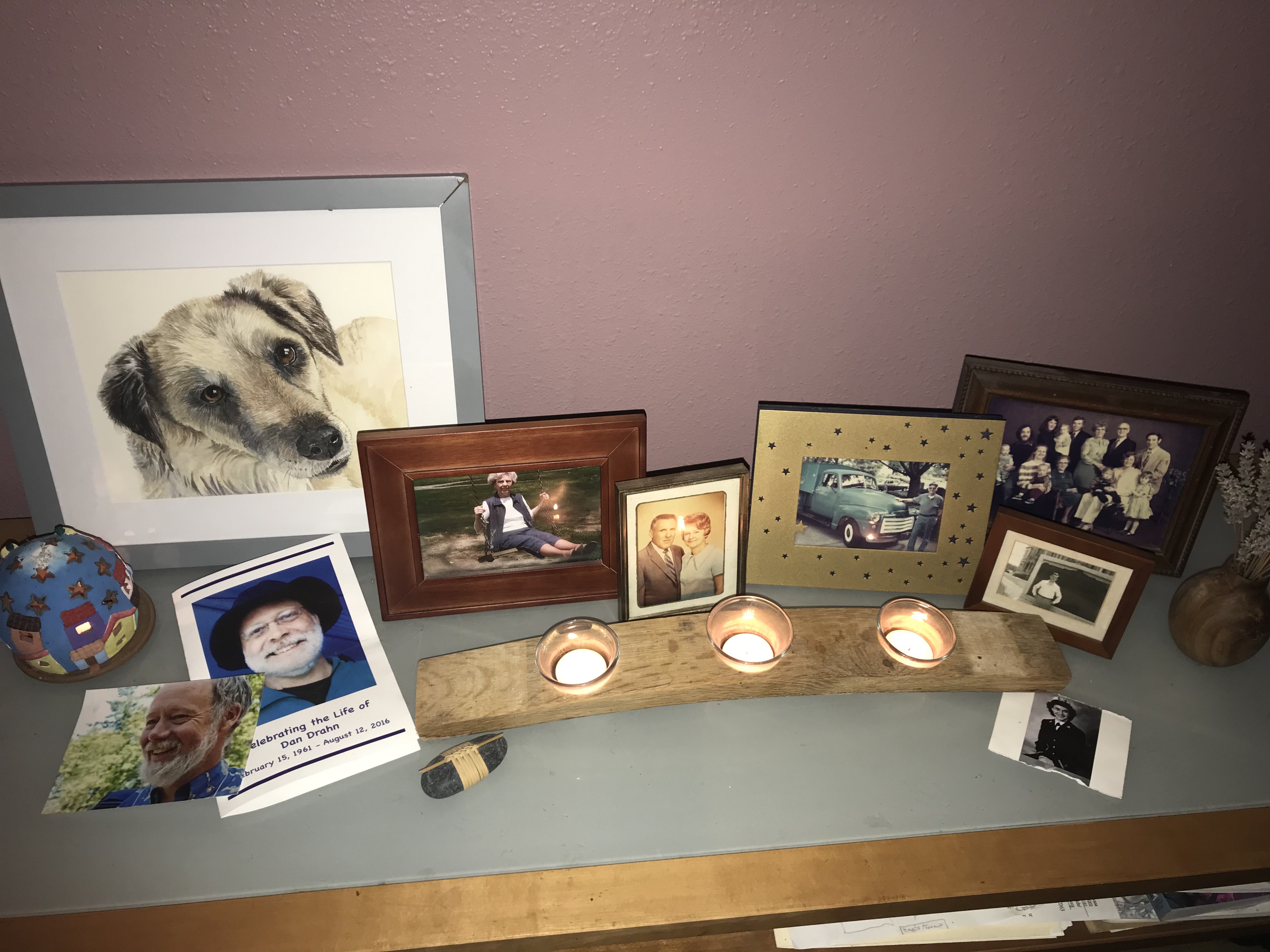 Here’s what ours looks like this year (including a portrait of our dear dog Buddy, who died in the spring). What do you do to recognize this time of the year that many believe the veil between the living and dead becomes quite thin?