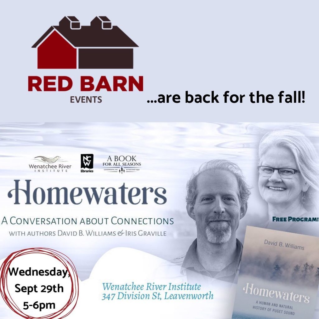 After the Lopez Island gig with David, the Naked Hiker and I traveled east of the mountains (the North Cascades) so David and I could again talk with readers in Leavenworth, Washington, the ancestral homelands of the šnp̍əšqʷáw̉šəxʷ (p’squosa or Wenatchi) people. This time, we had three hosts: the Wenatchee River Institute, the Leavenworth Public Library, and A Book for All Seasons bookstore. Just as on Lopez, David entertained and enlightened the audience with his knowledge about Puget Sound and its connection to the ecology and history with the center of the state.