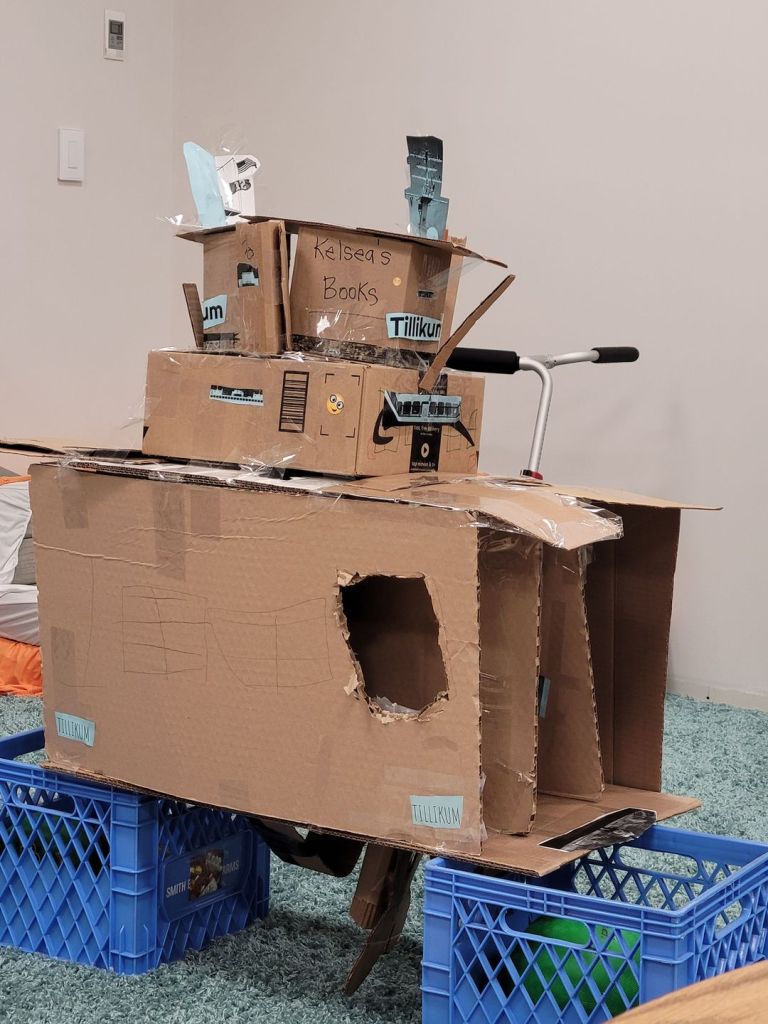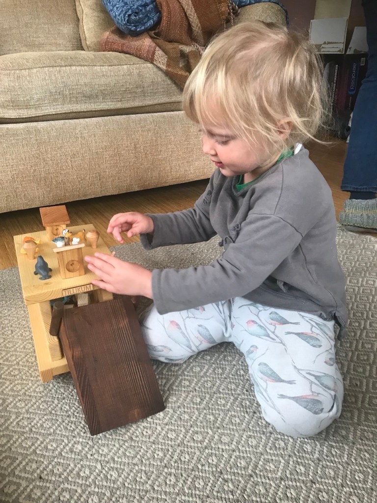 Maggie also used her imagination with this hand-built wooden replica of the Tillikum I found at the farmers’ market. I like her accommodation for animal passengers, but she has a little work to do on her technique with the loading ramp.