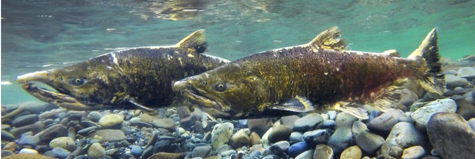 Chinook returned to the Elwha River, protecting their redd, photo by Steve Ringman, Seattle Times