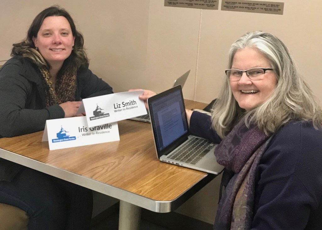 Following a hiatus due to COVID-19, the role of Writer-in-Residence (WIR) on the interisland ferry will resume again in January 2024. Lopez Island resident Iris Graville (right) developed the residency and served as the first WIR in 2018 (visit her blog from her term at www.writingtheinterisland.org). The second WIR, from 2019-2020, was San Juan Island writer Liz Smith (left).