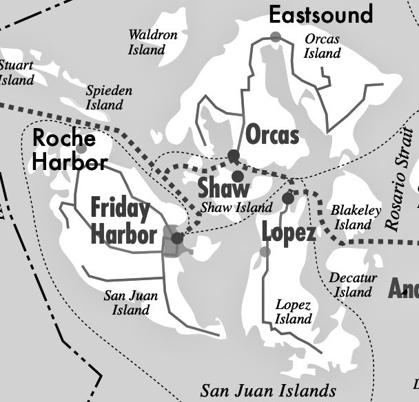 As Writer-in-Residence on the interisland ferry, you’ll find benefits for your creativity and productivity as you ride and write (at no cost) among four Washington State islands in the Salish Sea—San Juan, Orcas, Shaw, and Lopez. You’ll feel freed from timelines and expectations with the gentle movement of the ferry and the ever-changing scenery outside your window. Look up from your keyboard or writing pad to catch glimpses of cormorants, bald eagles, harbor seals, gulls, Madrones, firs, cedars, rocky shorelines, and occasionally, whales.