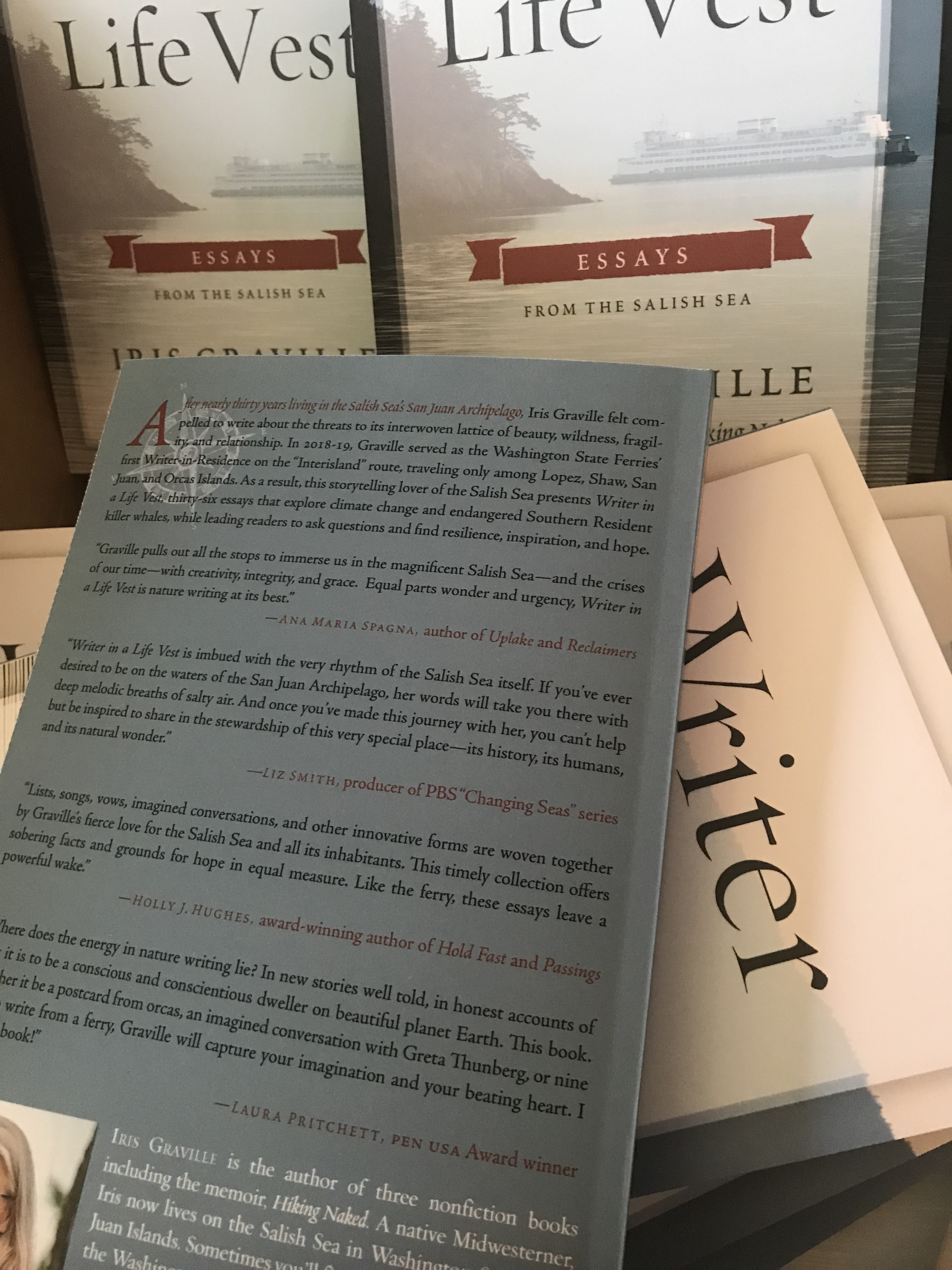 “In Writer in a Life Vest, Iris Graville pulls out all the stops to immerse us in the magnificent Salish Sea—and the crises of our time—with creativity, integrity, and grace. She jams with ukuleles, imagines conversations with Rachel Carson, writes vows of commitment, admires orcas and grieves them, and ultimately insists on hope. Equal parts wonder and urgency, Writer in a Life Vest is nature writing at its best.”